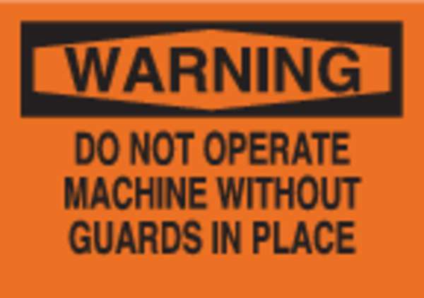SKU G7403650Categories SafetyDescription Warning Sign, Sign Subject Matter Machine Guarding, Height 10 In., Width 14 In., Sign Material Plastic, Sign Mounting Style With Mounting Holes, Header Warning, Legend Do Not Operate Machine Without Guards In Place, Printed Language English, Sign Shape Rectangle$17.49 / eachWeb priceWarning Sign, 10" Height, 14" Width, Plastic, Rectangle, EnglishSKU G7403650Categories SafetyDescription Warning Sign, Sign Subject Matter Machine Guarding, Height 10 In., Width 14 In., Sign Material Plastic, Sign Mounting Style With Mounting Holes, Header Warning, Legend Do Not Operate Machine Without Guards In Place, Printed Language English, Sign Shape Rectangle$17.49 / eachWeb price -