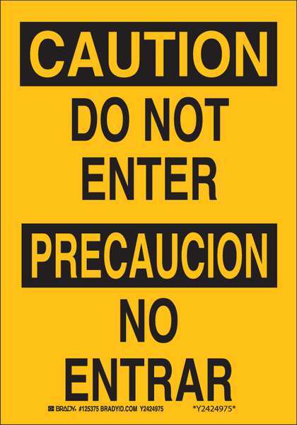 Caution/Precaucion Sign, 10" H, 7" W, Polyester, Rectangle, English, Spanish, 122645