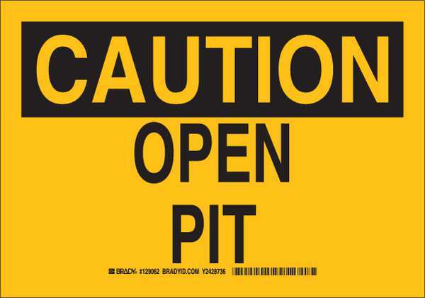 SKU G7412592Categories SafetyDescription Caution Sign, Sign Subject Matter Accident Prevention, Height 10 In., Width 14 In., Sign Material Polyester, Header Caution, Legend Open Pit, Printed Language English, Sign Shape Rectangle$29.99 / eachWeb priceCaution Sign, 10" H, 14" W, Polyester, Rectangle, English, 129065SKU G7412592Categories SafetyDescription Caution Sign, Sign Subject Matter Accident Prevention, Height 10 In., Width 14 In., Sign Material Polyester, Header Caution, Legend Open Pit, Printed Language English, Sign Shape Rectangle$29.99 / eachWeb price -