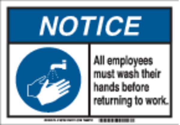 SKU G7396151Categories SafetyDescription Notice Sign, Sign Subject Matter Wash Hands, Height 7 In., Width 10 In., Sign Material Plastic, Sign Mounting Style With Mounting Holes, Header Notice, Legend All Employees Must Wash Their Hands Before Returning To Work., Printed Language English, Sign Shape Rectangle$23.11 / eachWeb priceNotice Sign, 7"Hx10"W, All Employees Mus, 145750SKU G7396151Categories SafetyDescription Notice Sign, Sign Subject Matter Wash Hands, Height 7 In., Width 10 In., Sign Material Plastic, Sign Mounting Style With Mounting Holes, Header Notice, Legend All Employees Must Wash Their Hands Before Returning To Work., Printed Language English, Sign Shape Rectangle$23.11 / eachWeb price -