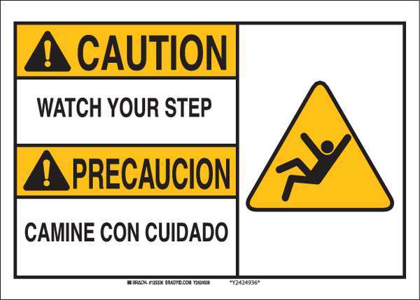 SKU G7417763Categories SafetyDescription Caution Sign, Sign Subject Matter Accident Prevention, Height 10 In., Width 14 In., Sign Material Aluminum, Header Caution/Precaucion, Legend Watch Your Step/Camine Con Cuidado, Printed Language English, Spanish, Sign Shape Rectangle$32.11 / eachWeb priceCaution Sign, 10" Height, 14" Width, Aluminum, Rectangle, English, SpanishSKU G7417763Categories SafetyDescription Caution Sign, Sign Subject Matter Accident Prevention, Height 10 In., Width 14 In., Sign Material Aluminum, Header Caution/Precaucion, Legend Watch Your Step/Camine Con Cuidado, Printed Language English, Spanish, Sign Shape Rectangle$32.11 / eachWeb price -