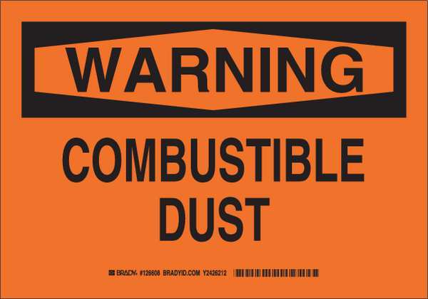 SKU G8464290Categories SafetyDescription Warning Sign, Sign Subject Matter Chemical, Gas or Hazardous Materials, Height 7 in, Width 10 in, Sign Material Aluminum, Sign Mounting Style With Mounting Holes, Header Warning, Legend Combustible Dust, Printed Language English, Sign Shape Rectangle$19.06 / eachWeb priceWarning Sign, 7 in H, 10 in W, Rectangle, English, 126606SKU G8464290Categories SafetyDescription Warning Sign, Sign Subject Matter Chemical, Gas or Hazardous Materials, Height 7 in, Width 10 in, Sign Material Aluminum, Sign Mounting Style With Mounting Holes, Header Warning, Legend Combustible Dust, Printed Language English, Sign Shape Rectangle$19.06 / eachWeb price -