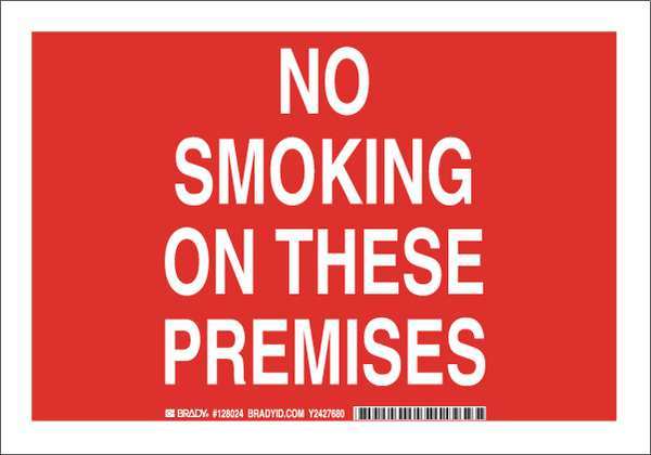 SKU G8475332Categories SafetyDescription No Smoking Sign, Sign Subject Matter No Smoking, Height 10 in, Width 14 in, Sign Material Plastic, Sign Mounting Style With Mounting Holes, Header No Header, Legend No Smoking On These Premises, Printed Language English, Sign Shape Rectangle$17.49 / eachWeb priceNo Smoking Sign, 10" H, 14 in W, Plastic, Rectangle, English, 128026SKU G8475332Categories SafetyDescription No Smoking Sign, Sign Subject Matter No Smoking, Height 10 in, Width 14 in, Sign Material Plastic, Sign Mounting Style With Mounting Holes, Header No Header, Legend No Smoking On These Premises, Printed Language English, Sign Shape Rectangle$17.49 / eachWeb price -