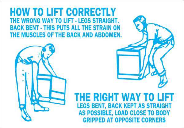 SKU G8480427Categories SafetyDescription Safety Reminder Sign, Sign Subject Matter Safety Incentive and Motivational, Height 7 In., Width 10 In., Sign Material Plastic, Sign Mounting Style With Mounting Holes, Header No Header, Legend How To Lift Correctly The Wrong Way To Lift - Legs Straight, Back Bent - This Puts All The Strain On The Muscles Of The Back And Abdomen. The Right Way To Lift Legs Bent, Back Kept As Straight As Possible, Load Close To Body Gripped At Opposite Corners, Printed Language English, Sign Shape Rectangle$11.94 / eachWeb priceSafety Reminder Sign, 7X10, English, Height: 7", 22680SKU G8480427Categories SafetyDescription Safety Reminder Sign, Sign Subject Matter Safety Incentive and Motivational, Height 7 In., Width 10 In., Sign Material Plastic, Sign Mounting Style With Mounting Holes, Header No Header, Legend How To Lift Correctly The Wrong Way To Lift - Legs Straight, Back Bent - This Puts All The Strain On The Muscles Of The Back And Abdomen. The Right Way To Lift Legs Bent, Back Kept As Straight As Possible, Load Close To Body Gripped At Opposite Corners, Printed Language English, Sign Shape Rectangle$11.94 / eachWeb price -