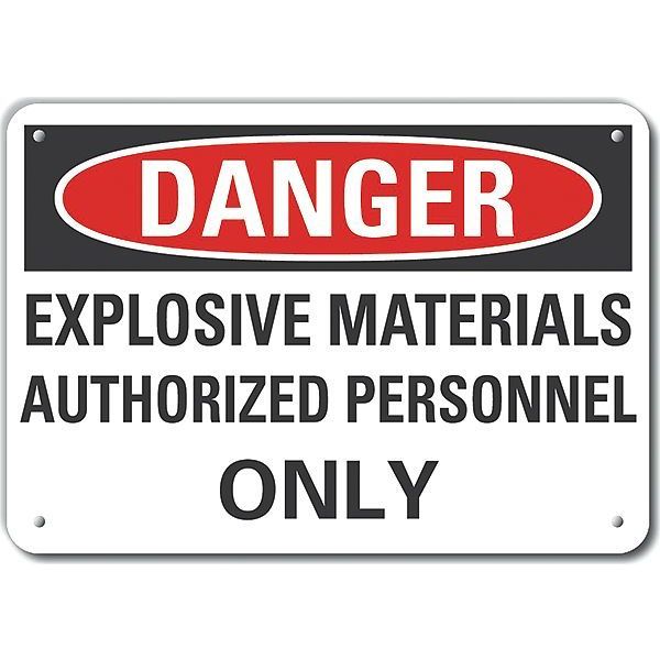 Plastic Explosive Materials Danger Sign, 10 in H, 14 in W, Horizontal Rectangle, LCU4-0617-NP_14X10SKU G9497218Categories SafetyDescription Plastic Explosive Materials Danger Sign, Horizontal Rectangle, Number of Printed Sides 1, English, Sign Format Traditional OSHA, Sign Legend Explosive Materials Authorized Personnel Only, Sign Legend Background Color White, Sign Legend Style TextgraingerSKU: 64RT24, mscSKU: , zoro_no: G9497218, mongo_id: 65bbe8069a749db82276d100
