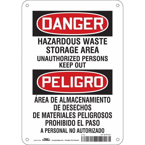 Safety Sign, 10 in H, 7 in W, Horizontal Rectangle, English, Spanish, 472P90SKU G5888878Categories SafetyDescription Safety Sign, Horizontal Rectangle, Number of Printed Sides 1, English, Spanish, Sign Format Traditional OSHA, Sign Legend Hazardous Waste Storage Area Unauthorized Persons Keep Out/Area De Almacenamiento De Desechos De Materiales Peligrosos. Prohibido El Paso A Personal No Autorizado, Sign Legend Background Color White, Sign Legend Style TextgraingerSKU: 472P90, mscSKU: , zoro_no: G5888878, mongo_id: 65bbe8069a749db82276d4a6