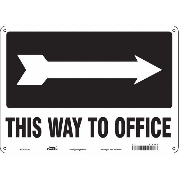 Safety Sign, 10 in Height, 14 in Width, Aluminum, Horizontal Rectangle, English, 473D02SKU G5601001Categories SafetyDescription Safety Sign, Horizontal Rectangle, Number of Printed Sides 1, English, Sign Legend This Way To Office (Right Arrow), Sign Legend Background Color White, Sign Legend Style Symbol and TextgraingerSKU: 473D02, mscSKU: , zoro_no: G5601001, mongo_id: 65bbe8069a749db82276d4bc