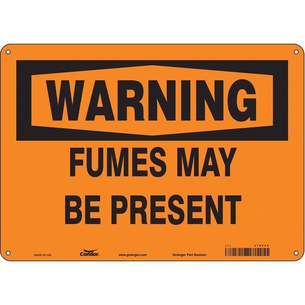 SKU G5863833Categories SafetyDescription Safety Sign, Horizontal Rectangle, Number of Printed Sides 1, English, Sign Format Traditional OSHA, Sign Legend Fumes May Be Present, Sign Legend Background Color Orange, Sign Legend Style TextgraingerSKU: 476F46, mscSKU: , zoro_no: G5863833, mongo_id: 65bbe8069a749db82276d45c