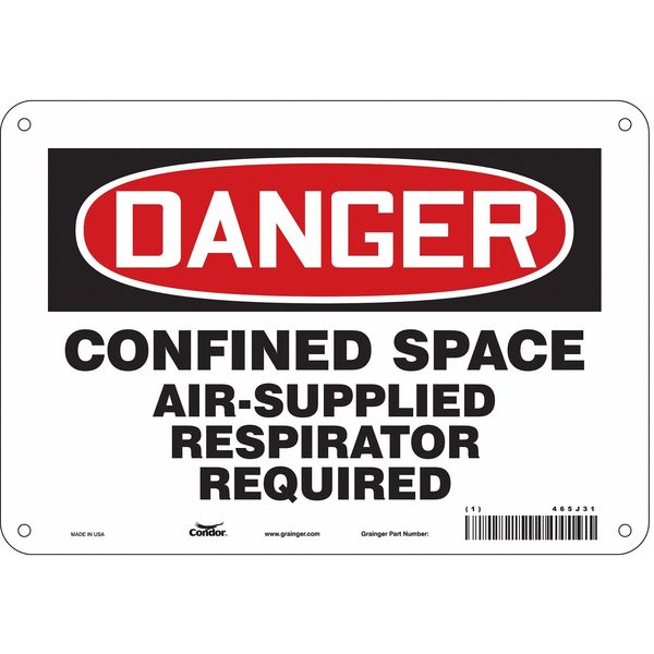 Safety Sign, 7 in Height, 10 in Width, Aluminum, Vertical Rectangle, English, 465J31SKU G5191398Categories SafetyDescription Safety Sign, Vertical Rectangle, Number of Printed Sides 1, English, Sign Format Traditional OSHA, Sign Legend Confined Space Air-Supplied Respirator Required, Sign Legend Background Color White, Sign Legend Style TextgraingerSKU: 465J31, mscSKU: , zoro_no: G5191398, mongo_id: 65bbe8069a749db82276d4af