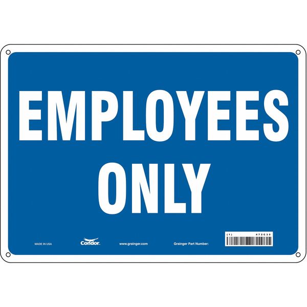 SKU G5185341Categories SafetyDescription Safety Sign, Horizontal Rectangle, Number of Printed Sides 1, English, Sign Format Other Format, Sign Legend Employees Only, Sign Legend Background Color Blue, Sign Legend Style TextgraingerSKU: 472C35, mscSKU: , zoro_no: G5185341, mongo_id: 65bbe80722d7a989a98d141b