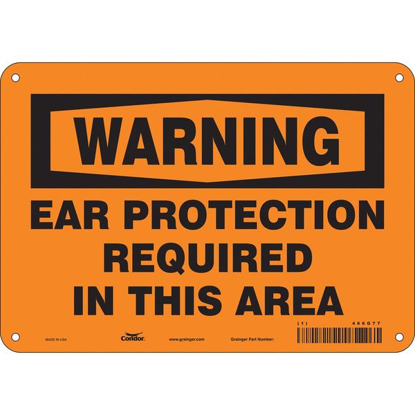 SKU G5828422Categories SafetyDescription Safety Sign, Vertical Rectangle, Number of Printed Sides 1, English, Sign Format Traditional OSHA, Sign Legend Ear Protection Required In This Area, Sign Legend Background Color Orange, Sign Legend Style TextgraingerSKU: 466G77, mscSKU: , zoro_no: G5828422, mongo_id: 65bbe80722d7a989a98d1521