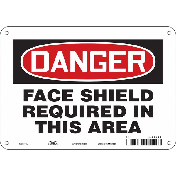 SKU G5221041Categories SafetyDescription Safety Sign, Vertical Rectangle, Number of Printed Sides 1, English, Sign Format Traditional OSHA, Sign Legend Face Shield Required In This Area, Sign Legend Background Color White, Sign Legend Style TextgraingerSKU: 466Y72, mscSKU: , zoro_no: G5221041, mongo_id: 65bbe80722d7a989a98d1352