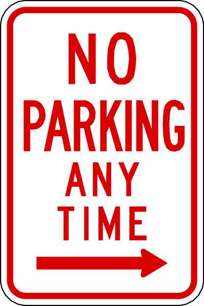 No Parking Sign, 12" W, 18" H, English, Aluminum