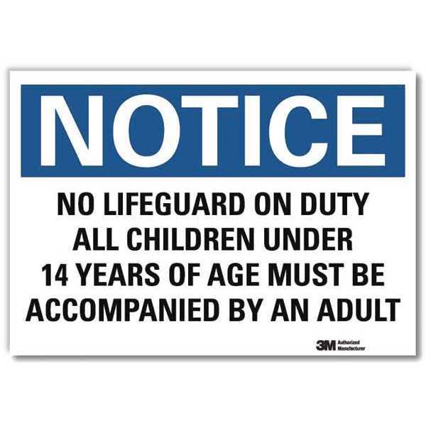 SKU G2759946Categories SafetyDescription Notice Sign, Vertical Rectangle, Number of Printed Sides 1, English, Sign Format Traditional OSHA, Sign Legend No Lifeguard On Duty All Children Under 14 Years Of Age Must Be Accompanied By An Adult, Sign Legend Background Color White, Sign Legend Style TextgraingerSKU: 34JT36, mscSKU: , zoro_no: G2759946, mongo_id: 65bbe80722d7a989a98d0ff3