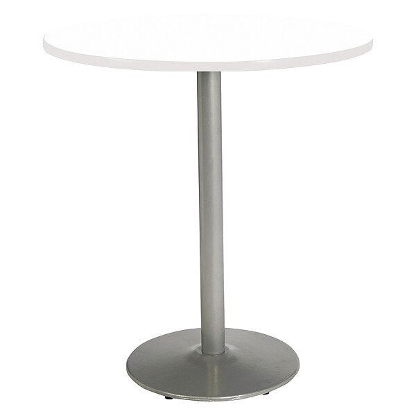 Round KFI Mode 42" Round Breakroom Table with Designer White Top, Round Silver Base, Counter Height