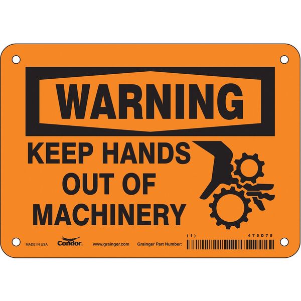 SKU G5250380Categories SafetyDescription Safety Sign, Horizontal Rectangle, Number of Printed Sides 1, English, Sign Format Traditional OSHA, Sign Legend Keep Hands Out Of Machinery, Sign Legend Background Color Orange, Sign Legend Style Symbol and TextgraingerSKU: 475D75, mscSKU: , zoro_no: G5250380, mongo_id: 65bbe76d3aaddbd5a9093935