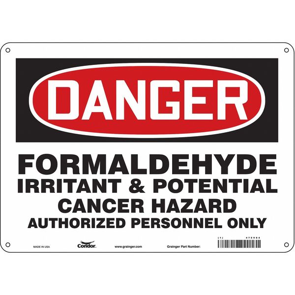 Safety Sign, 10 in Height, 14 in Width, Aluminum, Horizontal Rectangle, English, 475V84SKU G5834110Categories SafetyDescription Safety Sign, Horizontal Rectangle, Number of Printed Sides 1, English, Sign Format Traditional OSHA, Sign Legend Formaldehyde Irritant & Potential Cancer Hazard Authorized Personnel Only, Sign Legend Background Color White, Sign Legend Style TextgraingerSKU: 475V84, mscSKU: , zoro_no: G5834110, mongo_id: 65bbe76d3aaddbd5a9093967