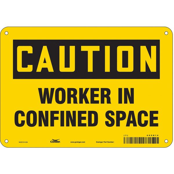 SKU G5881939Categories SafetyDescription Safety Sign, Vertical Rectangle, Number of Printed Sides 1, English, Sign Format Traditional OSHA, Sign Legend Worker In Confined Space, Sign Legend Background Color Yellow, Sign Legend Style TextgraingerSKU: 465H14, mscSKU: , zoro_no: G5881939, mongo_id: 65bbe76d3aaddbd5a909391a