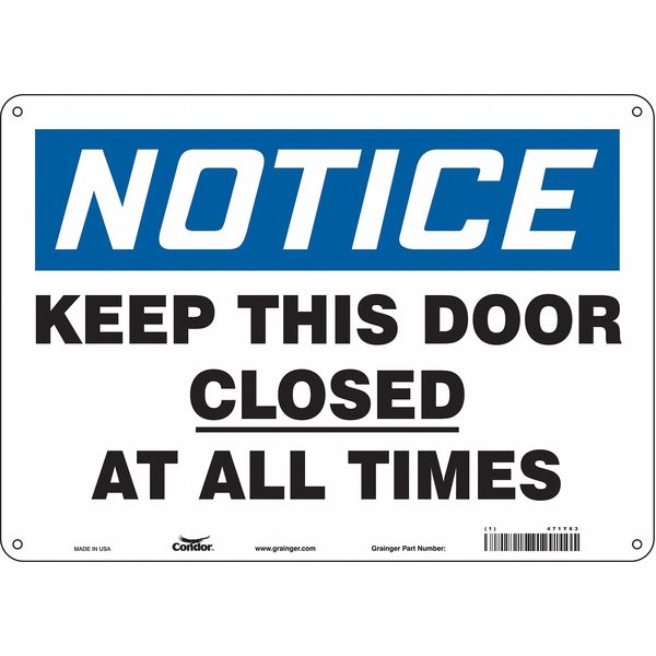 SKU G5891982Categories SafetyDescription Safety Sign, Horizontal Rectangle, Number of Printed Sides 1, English, Sign Format Traditional OSHA, Sign Legend Keep This Door Closed At All Times, Sign Legend Background Color White, Sign Legend Style TextgraingerSKU: 471Y83, mscSKU: , zoro_no: G5891982, mongo_id: 65bbe76c3aaddbd5a9093886