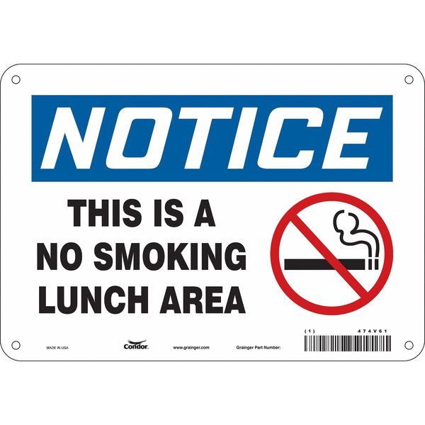 SKU G5622047Categories SafetyDescription Safety Sign, Vertical Rectangle, Number of Printed Sides 1, English, Sign Format Traditional OSHA, Sign Legend This Is A No Smoking Lunch Area, Sign Legend Background Color White, Sign Legend Style Symbol and TextgraingerSKU: 474V61, mscSKU: , zoro_no: G5622047, mongo_id: 65bbe76c3aaddbd5a909388e