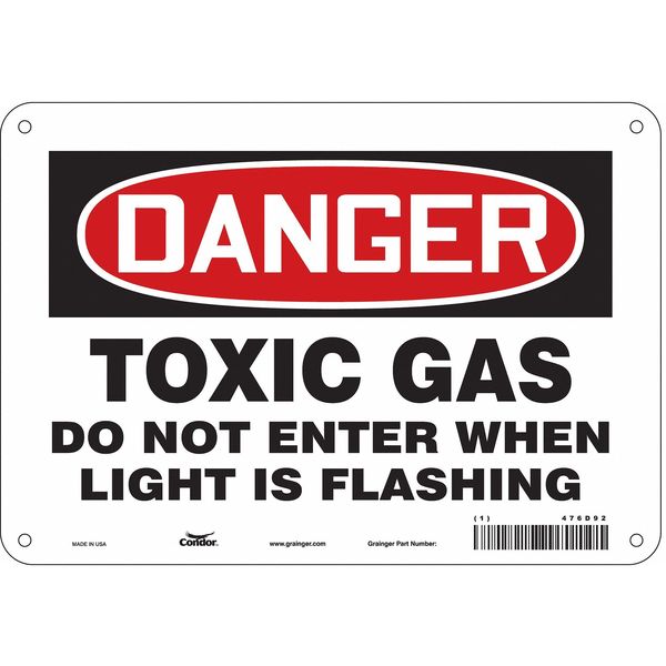Chemical Sign, 7 in H, 10 in W, Vertical Rectangle, English, 476D92SKU G5789563Categories SafetyDescription Chemical Sign, Vertical Rectangle, Number of Printed Sides 1, English, Sign Format Traditional OSHA, Sign Legend Toxic Gas Do Not Enter When Light Is Flashing, Sign Legend Background Color White, Sign Legend Style TextgraingerSKU: 476D92, mscSKU: , zoro_no: G5789563, mongo_id: 65bbe76c3aaddbd5a90938ec