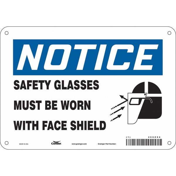 Safety Sign, 7 in Height, 10 in Width, Aluminum, Vertical Rectangle, English, 466Z94SKU G5787308Categories SafetyDescription Safety Sign, Vertical Rectangle, Number of Printed Sides 1, English, Sign Format Traditional OSHA, Sign Legend Safety Glasses Must Be Worn With Face Shield, Sign Legend Background Color White, Sign Legend Style Symbol and TextgraingerSKU: 466Z94, mscSKU: , zoro_no: G5787308, mongo_id: 65bbe76c3aaddbd5a9093865