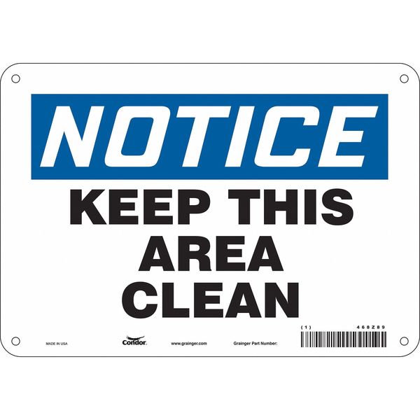 Safety Sign, 7 in Height, 10 in Width, Aluminum, Vertical Rectangle, English, 468Z89SKU G5199420Categories SafetyDescription Safety Sign, Vertical Rectangle, Number of Printed Sides 1, English, Sign Format Traditional OSHA, Sign Legend Keep This Area Clean, Sign Legend Background Color White, Sign Legend Style TextgraingerSKU: 468Z89, mscSKU: , zoro_no: G5199420, mongo_id: 65bbe76c3aaddbd5a9093892