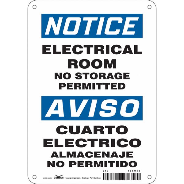 Safety Sign, 10 in Height, 7 in Width, Aluminum, Horizontal Rectangle, English, Spanish, 475U13SKU G5783458Categories SafetyDescription Safety Sign, Horizontal Rectangle, Number of Printed Sides 1, English, Spanish, Sign Format Traditional OSHA, Sign Legend Electrical Room No Storage Permitted/Cuarto Electrico Almacenaje No Permitido, Sign Legend Background Color White, Sign Legend Style TextgraingerSKU: 475U13, mscSKU: , zoro_no: G5783458, mongo_id: 65bbe76c3aaddbd5a9093840