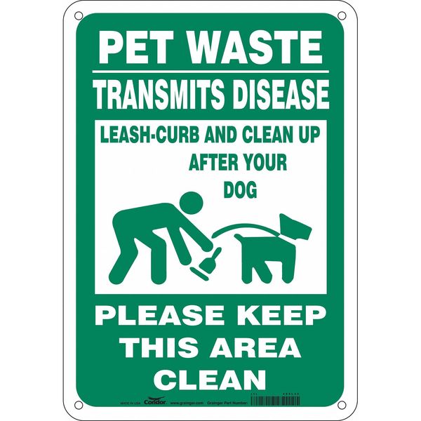Safety Sign, 10 in Height, 7 in Width, Aluminum, Horizontal Rectangle, English, 485L32SKU G6303427Categories SafetyDescription Safety Sign, Horizontal Rectangle, Number of Printed Sides 1, English, Sign Legend Pet Waste Transmits Disease Leash-Curb And Clean Up After Your Dog Please Keep This Area Clean, Sign Legend Background Color Green, White, Sign Legend Style Symbol and TextgraingerSKU: 485L32, mscSKU: , zoro_no: G6303427, mongo_id: 65bbe76c3aaddbd5a9093852