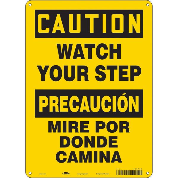 Safety Sign, 14 in Height, 10 in Width, Aluminum, Vertical Rectangle, English, Spanish, 469P86SKU G5065160Categories SafetyDescription Safety Sign, Vertical Rectangle, Number of Printed Sides 1, English, Spanish, Sign Format Traditional OSHA, Sign Legend Watch Your Step/Mire Por Donde Camina, Sign Legend Background Color Yellow, Sign Legend Style TextgraingerSKU: 469P86, mscSKU: , zoro_no: G5065160, mongo_id: 65bbe76d3aaddbd5a9093a0f