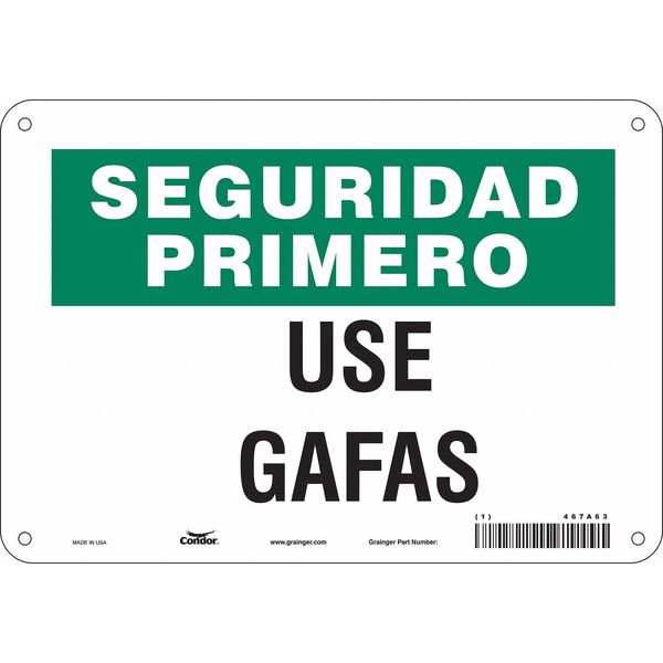 Safety Sign, 10" W, 7" H, 0.032" ThicknessSKU G5787770Categories SafetyDescription Safety Sign, Vertical Rectangle, Number of Printed Sides 1, Spanish, Sign Format Traditional OSHA, Sign Legend Use Gafas, Sign Legend Background Color White, Sign Legend Style TextgraingerSKU: 467A63, mscSKU: , zoro_no: G5787770, mongo_id: 65bbe76d3aaddbd5a9093994