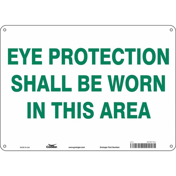 Safety Sign, 10 in Height, 14 in Width, Aluminum, Horizontal Rectangle, English, 466T34SKU G5545543Categories SafetyDescription Safety Sign, Horizontal Rectangle, Number of Printed Sides 1, English, Sign Format Other Format, Sign Legend Eye Protection Shall Be Worn In This Area, Sign Legend Background Color White, Sign Legend Style TextgraingerSKU: 466T34, mscSKU: , zoro_no: G5545543, mongo_id: 65bbe76c3aaddbd5a909384c