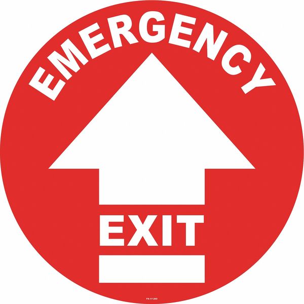 Floor Sign, 17 in H, 17 in W, Vinyl, Circle, English, FS-17-202SKU G6538590Categories SafetyDescription Floor Sign, Circle, Number of Printed Sides 1, English, Sign Format Other Format, Sign Legend Emergency Exit, Sign Legend Background Color Red, Sign Legend Style Symbol and Text, Sign Legend Character Height 1 3/4 ingraingerSKU: 467F74, mscSKU: , zoro_no: G6538590, mongo_id: 65bbe76d3aaddbd5a9093c07