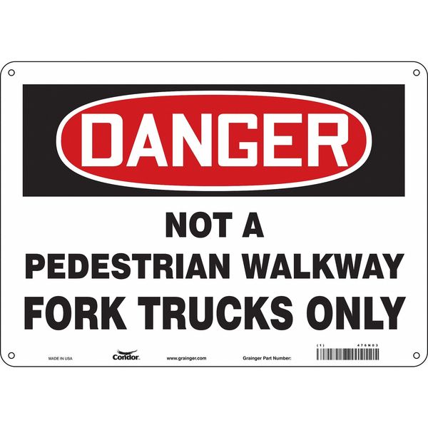 Safety Sign, 10 in Height, 14 in Width, Aluminum, Horizontal Rectangle, English, 476N03SKU G5841783Categories SafetyDescription Safety Sign, Horizontal Rectangle, Number of Printed Sides 1, English, Sign Format Traditional OSHA, Sign Legend Not A Pedestrian Walkway Fork Trucks Only, Sign Legend Background Color White, Sign Legend Style TextgraingerSKU: 476N03, mscSKU: , zoro_no: G5841783, mongo_id: 65bbe76c3aaddbd5a9093808
