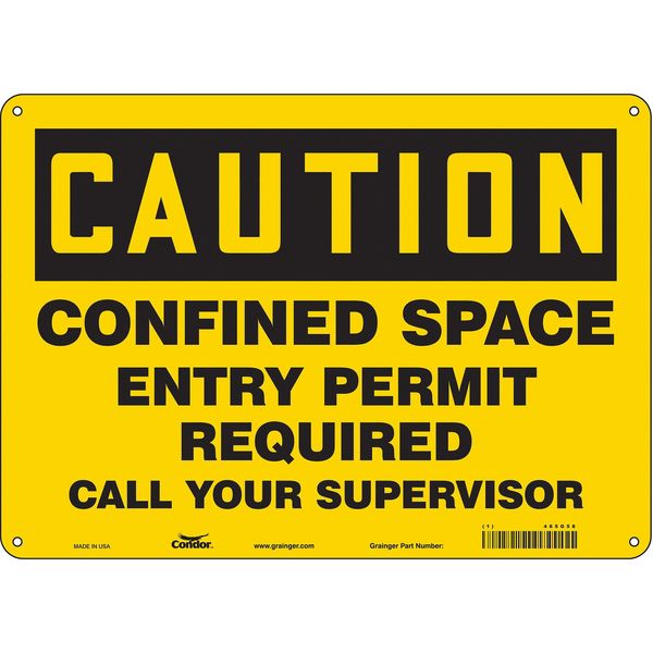 Safety Sign, 10 in Height, 14 in Width, Aluminum, Horizontal Rectangle, English, 465G58SKU G5893951Categories SafetyDescription Safety Sign, Horizontal Rectangle, Number of Printed Sides 1, English, Sign Format Traditional OSHA, Sign Legend Confined Space Entry Permit Required Call Your Supervisor, Sign Legend Background Color Yellow, Sign Legend Style TextgraingerSKU: 465G58, mscSKU: , zoro_no: G5893951, mongo_id: 65bbe76c3aaddbd5a90937ce