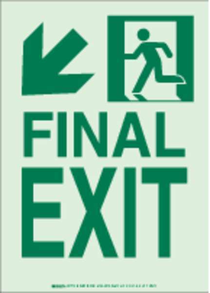 Exit Sign, 14X10", GRN/WHT, Final Exit