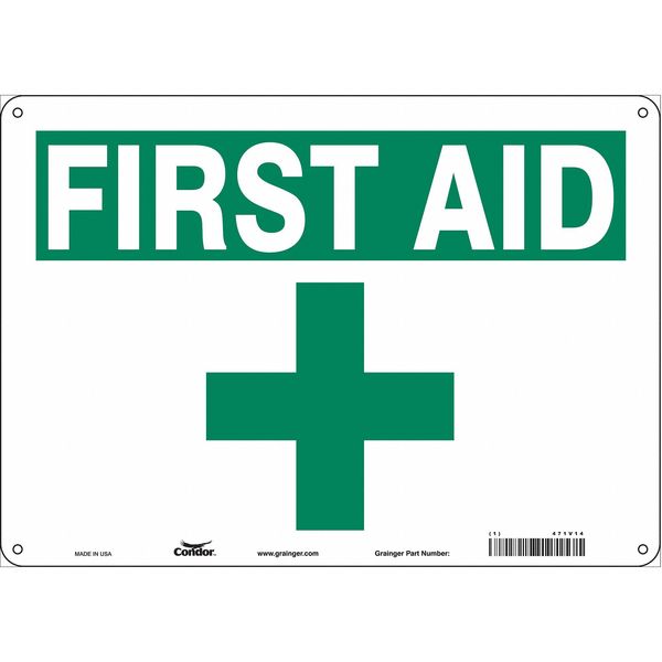 First Aid Sign, 14" Wx10" H, 0.032" Thick, 471V10
