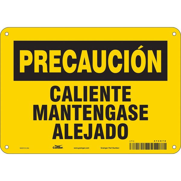 SKU G5591700Categories SafetyDescription Safety Sign, Vertical Rectangle, Number of Printed Sides 1, Spanish, Sign Format Traditional OSHA, Sign Legend Caliente Mantengase Alejado, Sign Legend Background Color Yellow, Sign Legend Style Text$14.74 / eachWeb price Danger Sign, 10" W x 7" H, 0.032" Thick