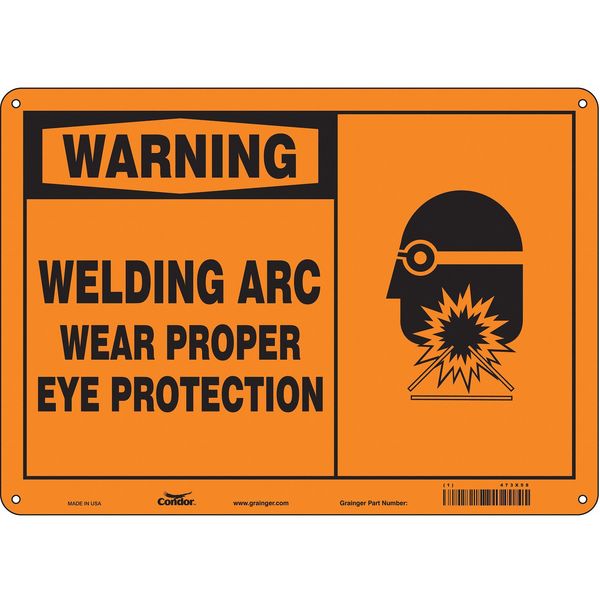 SKU G5288810Categories SafetyDescription Safety Sign, Horizontal Rectangle, Number of Printed Sides 1, English, Sign Format Traditional OSHA, Sign Legend Welding Arc Wear Proper Eye Protection, Sign Legend Background Color Orange, Sign Legend Style Symbol and Text Safety Sign, 10 in Height, 14 in Width, Aluminum, Horizontal Rectangle, English, 473X58