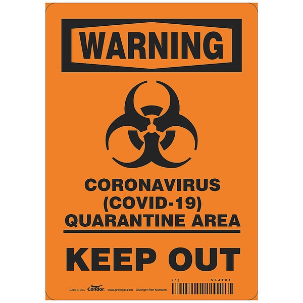 SKU G6623837Categories SafetyDescription Coronavirus Quarantine Area Sign, Sign Subject Matter Coronavirus Prevention, Height 14 in, Width 10 in, Sign Material Polystyrene, Sign Mounting Style With Mounting Holes, Header Warning, Legend Coronavirus (Covid-19) Quarantine Area Keep Out, Printed Language English, Sign Shape Rectangle$10.61 / eachWeb price Coronavirus Quarantine Area Sign, 10" W x 14" H, English, Polystyrene