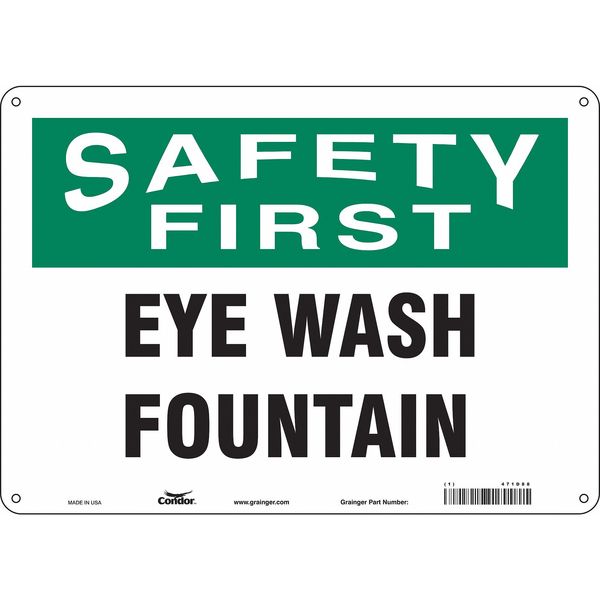 Safety Sign, 10 in Height, 14 in Width, Aluminum, Horizontal Rectangle, English, 471D88SKU G5215030Categories SafetyDescription Safety Sign, Horizontal Rectangle, Number of Printed Sides 1, English, Sign Legend Eye Wash Fountain, Sign Legend Background Color White, Sign Legend Style TextgraingerSKU: 471D88, mscSKU: , zoro_no: G5215030, mongo_id: 65bbe76c3aaddbd5a909389e