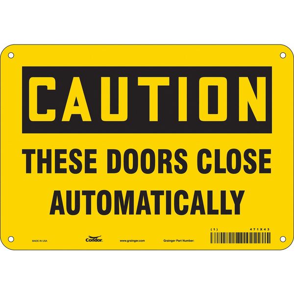 Safety Sign, 7 in Height, 10 in Width, Aluminum, Vertical Rectangle, English, 471X43SKU G5600277Categories SafetyDescription Safety Sign, Vertical Rectangle, Number of Printed Sides 1, English, Sign Format Traditional OSHA, Sign Legend These Doors Close Automatically, Sign Legend Background Color Yellow, Sign Legend Style TextgraingerSKU: 471X43, mscSKU: , zoro_no: G5600277, mongo_id: 65bbe76c3aaddbd5a9093856