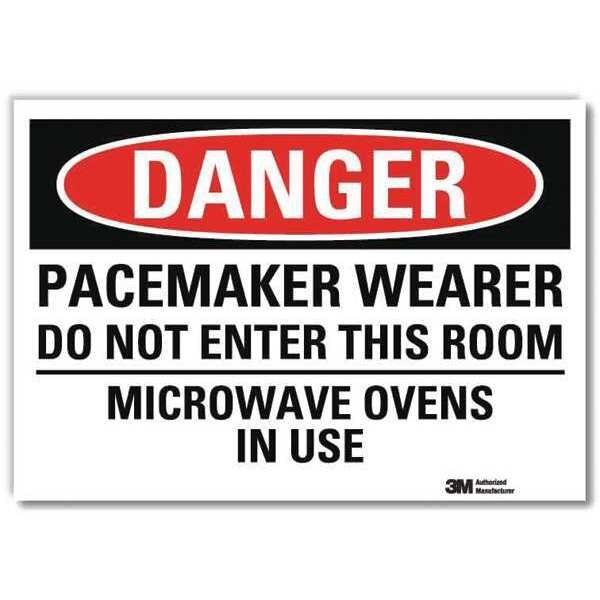 Danger Sign, Slf-Adhesv Mount, 14inWx10inH, U3-1900-RD_14X10SKU G2740529Categories SafetyDescription Danger Sign, Horizontal Rectangle, Number of Printed Sides 1, English, Sign Format Traditional OSHA, Sign Legend Pacemaker Wearer Do Not Enter This Room. Microwave Ovens In Use., Sign Legend Background Color White, Sign Legend Style Text$6.99 / eachWeb price -