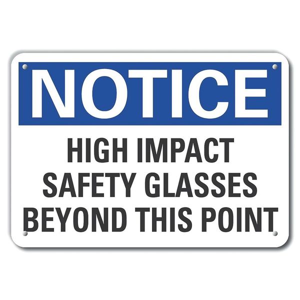 SKU G8868146Categories SafetyDescription Plastic Eye Notice Sign, Vertical Rectangle, Number of Printed Sides 1, English, Sign Format ANSI/OSHA Format, Sign Legend High Impact Safety Glasses Beyond This Point, Sign Legend Background Color White, Sign Legend Style Text$5.94 / eachWeb price Plastic Eye  Notice Sign, 7 in Height, 10 in Width, Plastic, Vertical Rectangle, English
