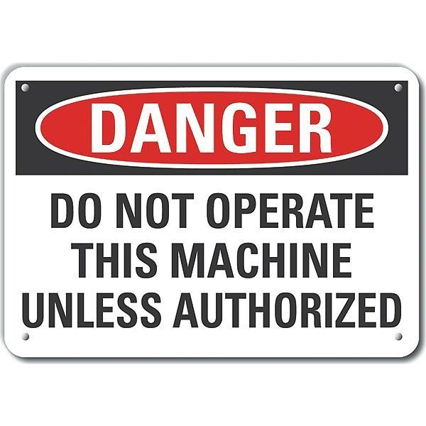 SKU G9497166Categories SafetyDescription Plastic Machine & Operation Danger Sign, Horizontal Rectangle, Number of Printed Sides 1, English, Sign Format Traditional OSHA, Sign Legend Do Not Operate This Machine Unless Authorized, Sign Legend Background Color White, Sign Legend Style Text Plastic Machine & Operation Danger Sign, 10 in Height, 14 in Width, Plastic, Horizontal Rectangle