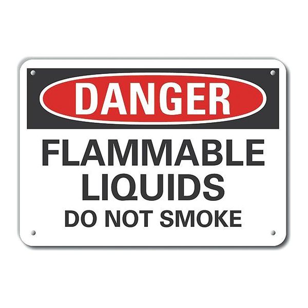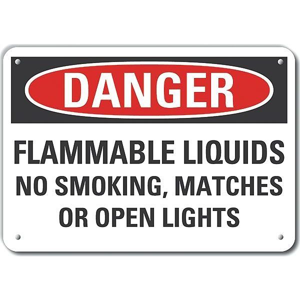 SKU G9348145Categories SafetyDescription Reflective Flammable Liquid Danger Sign, Vertical Rectangle, Number of Printed Sides 1, English, Sign Format Traditional OSHA, Sign Legend Flammable Liquids Do Not Smoke, Sign Legend Background Color White, Sign Legend Style Text Reflective  Flammable Liquid Danger Sign, 7 in Height, 10 in Width, Aluminum, Vertical Rectangle