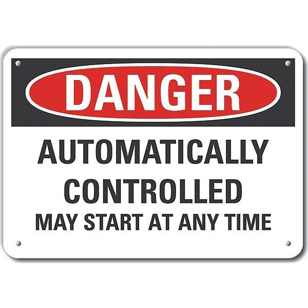 SKU G9497315Categories SafetyDescription Plastic Automatic Equipment Danger Sign, Horizontal Rectangle, Number of Printed Sides 1, English, Sign Format Traditional OSHA, Sign Legend Automatically Controlled May Start At Any Time, Sign Legend Background Color White, Sign Legend Style Text Plastic Automatic Equipment Danger Sign, 10 in Height, 14 in Width, Plastic, Horizontal Rectangle
