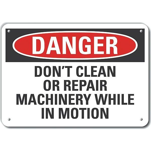 SKU G9497470Categories SafetyDescription Plastic Machine & Operation Danger Sign, Horizontal Rectangle, Number of Printed Sides 1, English, Sign Format Traditional OSHA, Sign Legend Don't Clean Or Repair Machinery While In Motion, Sign Legend Background Color White, Sign Legend Style Text Plastic Machine & Operation Danger Sign, 10 in Height, 14 in Width, Plastic, Horizontal Rectangle