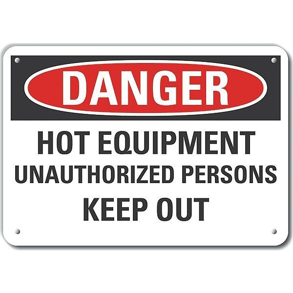 SKU G9497078Categories SafetyDescription Plastic Hot Danger Sign, Vertical Rectangle, Number of Printed Sides 1, English, Sign Format Traditional OSHA, Sign Legend Hot Equipment Unauthorized Persons Keep Out, Sign Legend Background Color White, Sign Legend Style Text Plastic Hot Danger Sign, 7 in H, 10 in W, Plastic, Vertical Rectangle, English, LCU4-0606-NP_10X7