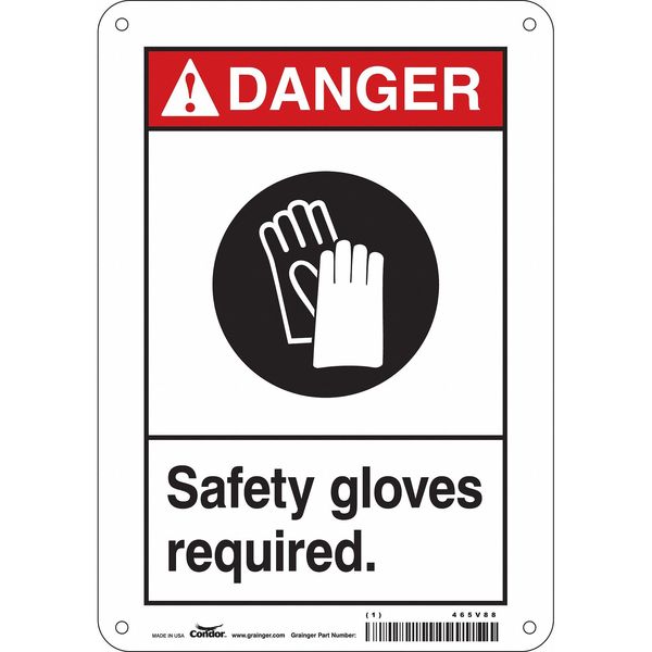 SKU G5649557Categories SafetyDescription Safety Sign, Horizontal Rectangle, Number of Printed Sides 1, English, Sign Format ANSI/OSHA Format, Sign Legend Safety Gloves Required., Sign Legend Background Color White, Sign Legend Style Symbol and Text Safety Sign, 10 in Height, 7 in Width, Aluminum, Horizontal Rectangle, English, 465V88